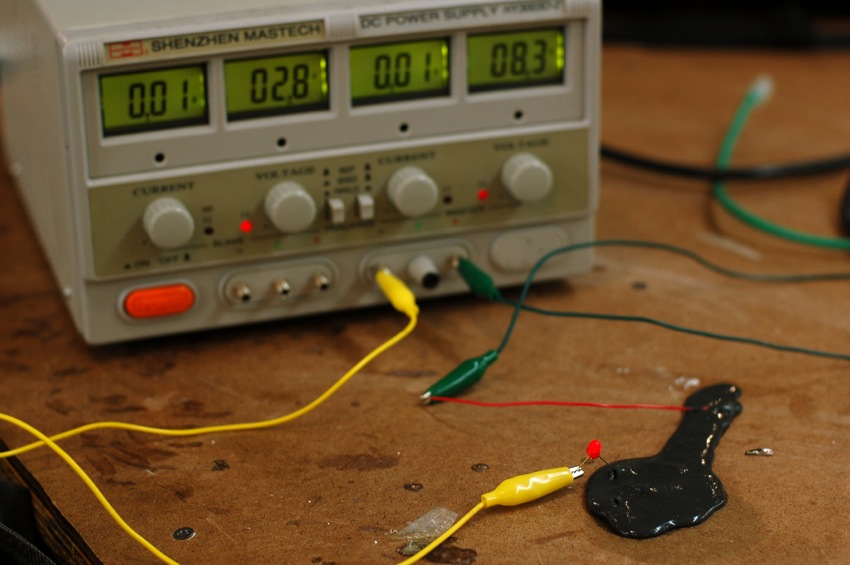 A mixture of graphite and home made Gak, conGoop is a playful conductive material that makes for a slimy, stringy and rubbery human computer interaction.